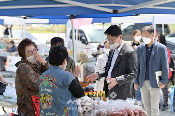 김정섭 시장은 지난 5일 직거래장터 현장을 직접 방문해 참여농가들을 격려하고, “코로나19 특별방역 대책을 세우는 등 안전한 장터가 될 수 있도록 적극적인 지원을 하겠다”며, “시민 여러분의 많은 관심과 참여를 바란다”고 말했다.