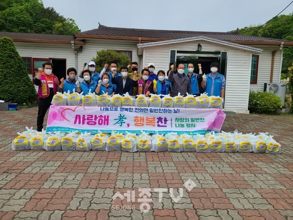 세종특별자치시 전의면지역사회보장협의체(공동위원장 이은일·윤혜란)가 6일 전의면 영당성결교회에서 ‘2021년 사랑해효(孝), 행복찬’ 나눔사업을 진행했다.