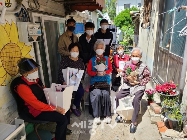주인공은 이웃사랑 봉사단(단장 김영진). 이 봉사단은 어버이 날을 맞아 13년째 전신마비로 집에 누워계시는 장애 어르신인 김 할아버지(81.대전 중구 은행동)와 주위에 살고 계신 어르신들이 참여하는 뜻 깊은 프로그램을 진행했다.