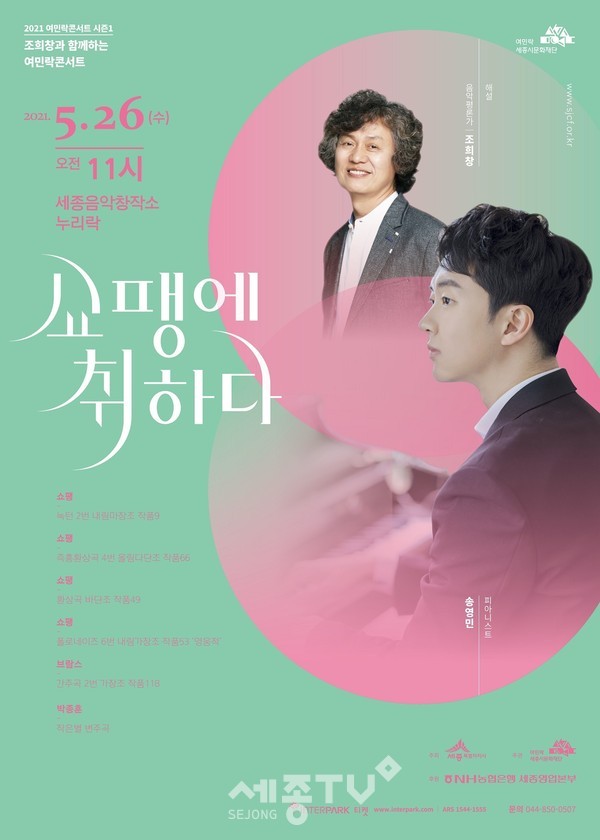 이번 공연은 ‘쇼팽에 취하다’를 주제로 하며 음악평론가 조희창의 해설과 피아니스트 송영민의 연주로 진행된다. 피아노를 가장 사랑한 작곡가 ‘쇼팽’의 작품 세계를 들여다보며, 그의 작품 중 대중적으로 잘 알려진 <녹턴 2번 작품9번>을 비롯해 <환상곡 작품49>, <폴로네이즈 6번 작품53> 등이 약 60분 간 연주될 예정이다.