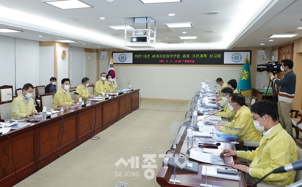 대전시(시장 허태정)는 11일 시청 중회의실에서 2022 대전 세계지방정부연합(UCLG)총회 기본계획 수립으로 추진방향 및 분야별 계획에 따른 협업을 위해 보고회를 개최했다고 밝혔다.