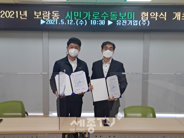 이날 유진기업㈜ 세종은 보람동과 협약을 맺고 지난해에 이어 올해도 시민가로수 돌보미 운동에 참여하기로 했다.