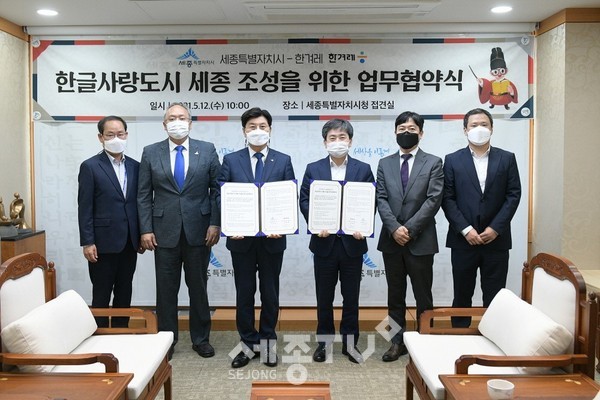 오는 5월 15일 세종대왕 탄신일을 앞두고 세종특별자치시(시장 이춘희)가 12일 한겨레 신문사와 ‘한글사랑도시 세종 조성을 위한 업무협약’을 체결했다.