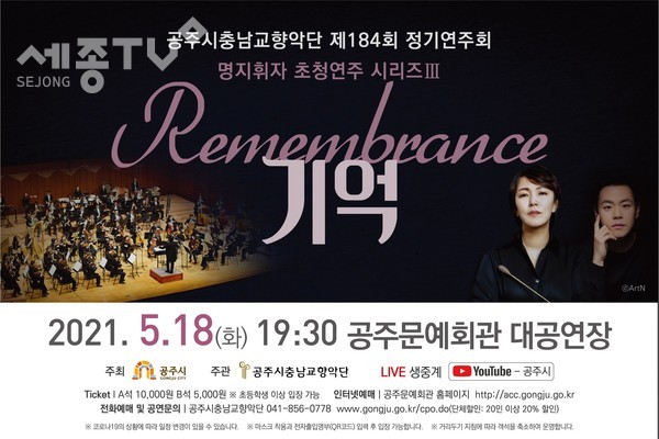 공주시 충남교향악단은 오는 18일 저녁 7시 30분 공주문예회관 대공연장에서 제184회 정기연주회 ‘기억’을 개최한다.