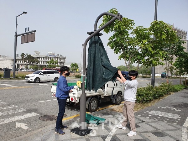 도담동은 이날 점검에서 그늘막이 제대로 펼쳐지는지, 훼손된 곳은 없는지 등에 대한 점검이 이뤄졌다.