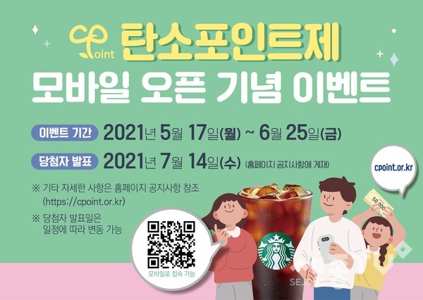 세종특별자치시(시장 이춘희)가 오는 17일부터 6월 25일까지 한국환경공단에서 주관하는 ‘탄소포인트제 모바일 서비스 구축에 따른 신규가입 및 친구 추천 이벤트’ 참여자를 모집한다.