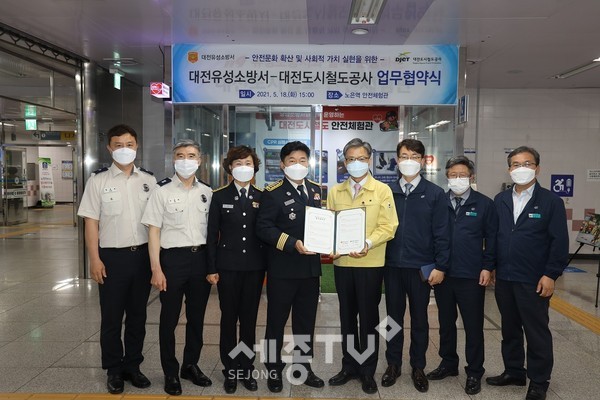 유성소방서(서장 황재동)는 도시철도를 이용하는 대전 시민의 안전의식 제고를 위한 심폐소생술 안전체험관 운영 활성화를 위해 ,대전도시철도공사와 함께 더 안전하고 효율적인 체험교육 추진 방안을 모색하고 상호 지속적인 업무 협조를 위한 업무협약을 체결했다고 18일 밝혔다.