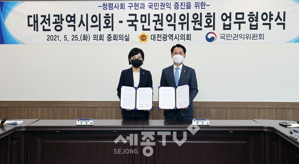 - 대전광역시의회↔국민권익위원회,손잡고 청렴사회 구현