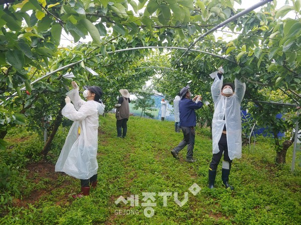 특히, 배, 복숭아 등의 봉지 씌우기는 적정시기를 놓치면 품질과 수량에 많은 영향을 끼치는 것으로 알려져 있어 이번 농촌일손돕기를 통해 배 농가를 방문, 조금이나마 작업이 수월하게 진행될 수 있도록 도왔다.