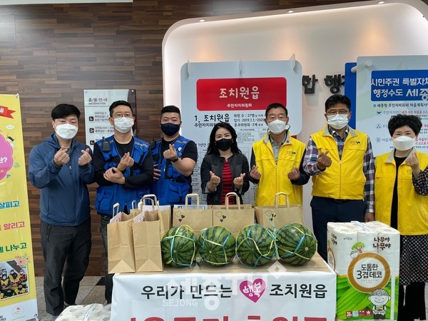 한편, 세종맘카페(회장 정연숙) 내 조직된 ‘희망나눔봉사단’은 소년소녀가장을 위한 생필품과 상비약 기부, 연서면 화재피해 지원, 연말 취약계층에 김장김치 전달 등 정기적인 나눔과 봉사활동을 해오고 있다.