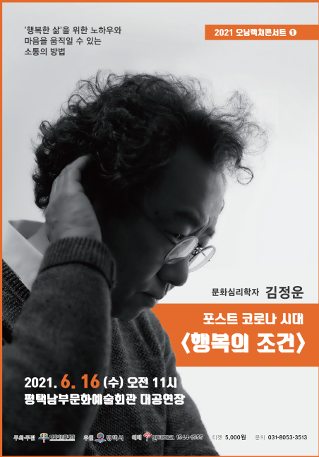 평택시문화재단 정장선 이사장은 여러가지문제연구소 김정운 소장이 말하는 ‘행복의 조건’을 주제로 하는 ‘렉쳐콘서트’를 다가오는 6월 16일에 관객들을 만난다.