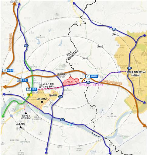 공주는 세종특별자치시와 연접한 송선동·동현동 일원 94만㎡다.