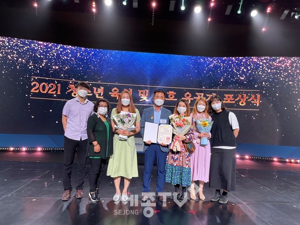 송악·합덕청소년문화의집 김종만 사무국장이 27일 여성가족부 주최로 대전dcc컨벤션센터에서 열린 ‘2021년 청소년 육성 및 보호 유공 시상식’에서 대통령 표창을 수상했다.