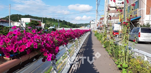 지금까지 제초작업 및 하천정비를 함께 추진하고 사피니아 꽃길 및 국화꽃 터널 조형물도 설치됐다.