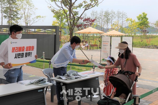 세종특별자치시시설관리공단(이사장 계용준, 이하 공단)은 환경의 날을 맞아 지난 2일 국립세종수목원에서 수목원을 방문한 시민을 대상으로 ‘올바른 분리배출 ’ 캠페인을 실시했다.