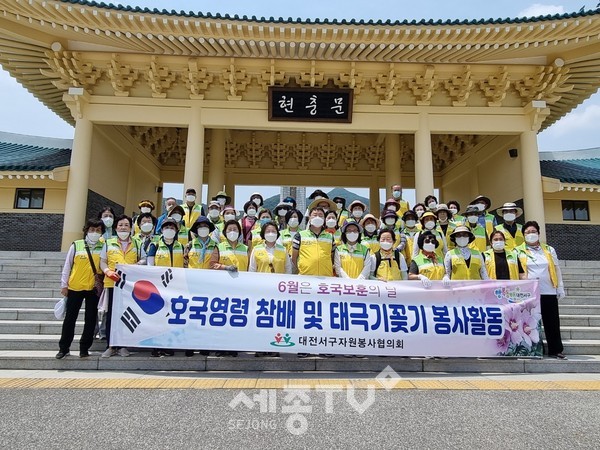 대전 서구(구청장 장종태) 자원봉사협의회(회장 안치용)는 지난 2일 호국보훈의 달을 맞이하여 국립대전현충원을 찾아 태극기 꽂기 자원봉사활동을 했다.