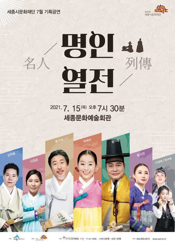 세종시문화재단(대표이사 김종률)은 7월 기획공연 <명인열전>을 7월 15일(목) 저녁 7시 30분 세종문화예술회관에서 선보인다.