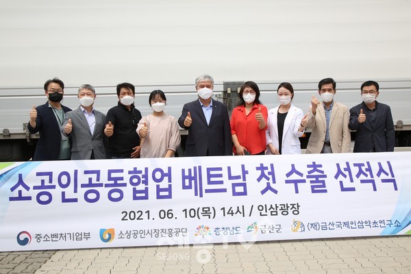 금산국제인삼약초연구소는 지난 10일 금산 인삼광장에서 영세 인삼제조가공 소공인들이 공동협업을 통해 베트남으로 첫 수출을 하는 매우 의미 있는 행사가 개최되었다 밝혔다.
