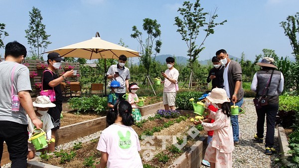 세종특별자치시육아종합지원센터(센터장 임이랑)는 영유아의 오감발달 및 창의력을 돕고 아ᄈᆞ와의 친밀한 관계 증진을 위해 세종시 자녀를 둔 아빠와 영유아를 대상으로 12일(토) 10시부터 국립세종수목원 생활정원에서‘아빠와 함께 가드닝체험 - 꼬마정원사’프로그램을 진행하였다.