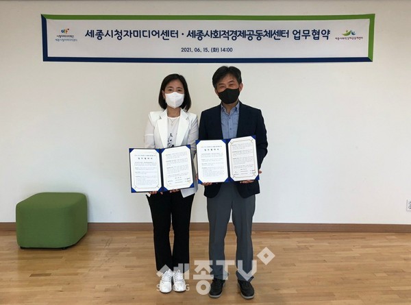 세종사회적경제공동체센터(센터장 주일식)와 세종시청자미디어센터(센터장 홍미애)가 15일 세종시청자미디어센터에서 시민의 미디어 역량강화 및 마을활동 활성화를 위한 업무협약을 체결했다.