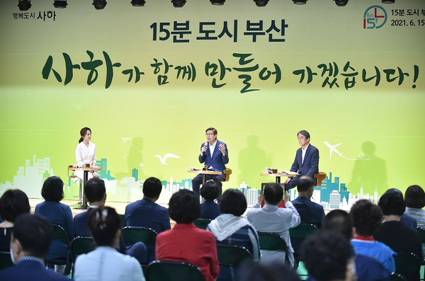 이어 서부산권장애인스포츠센터로 장소를 옮겨 김태석 사하구청장, 15분도시 정책공감단 등 사하구민 100여명이 함께한 자리에서 15분 도시 비전에 대해 직접 설명하고 지역 실정에 맞는 15분 도시 조성을 위해 주민의 목소리를 담아내고자 ‘사하구민과의 행복토크’ 시간을 가졌다.