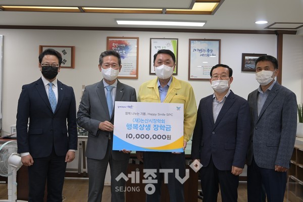 논산시(시장 황명선)는 17일 SPC그룹에서 논산시청을 방문해 장학금 1천만 원을 기탁했다고 전했다.