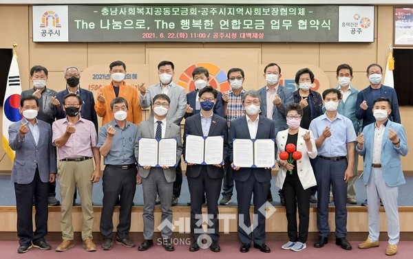 공주시(시장 김정섭)는 지난 22일 충남사회복지공동모금회(회장 성우종) 및 공주시 지역사회보장협의체와 함께 복지사각지대 해소와 나눔문화 확산을 위한 ‘The 나눔으로, The 행복한 연합모금’ 업무협약을 체결했다.