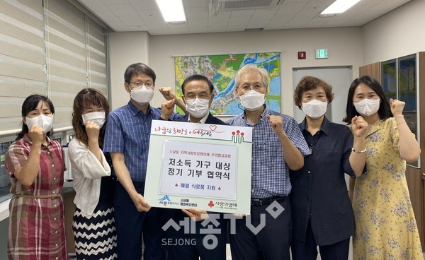 세종특별자치시 소담동 지역사회보장협의체(공동위원장 이동섭·정원범)가 지난 23일 소담동 우리명성교회와 지역 내 저소득가구에 식품지원을 위한 업무협약을 체결했다.