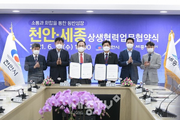 이번 협약은 지역공동체인 세종-천안 간 실질적 협력사업과 교류로 시민이 체감할 수 있는 상생협력과 양 도시의 공동발전을 도모하고자 마련됐다.