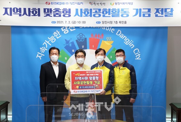 당진을 대표하는 발전소 설·정비 전문 공기업인 한전KPS(주)당진사업처가 지난 2일 당진시청을 방문해 시(市) 출연기관인 당진시복지재단에 지역사회 맞춤형 사회공헌활동 기금 1,340만 원을 전달했다.