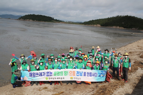 최근 집중호우로 강진, 해남지역에 유입된 해양쓰레기의 신속한 수거를 위해 새마을지도자가 함께 뭉쳤다.