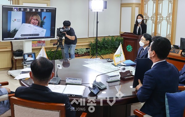 이날 협약은 세계적인 코로나 확산 상황을 감안하여 대전시가 제안한 비대면 방식으로 진행되었으며, 허태정 시장과 에밀리아 사이스(Emilia Saiz) 사무국장이 서명했다.