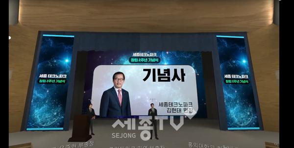 행사는 메타버스 세계에서 세종시 이춘희 시장이 아바타로 행사장에 참석하여 시상 및 환영사를 했으며, 세종시 강준현 국회의원, 홍성국 국회의원, 세종시의회 이태환 의장, 대전세종지방중소벤처기업청 조재연 청장 등 정부기관장과 한국테크노파크진흥회 양균의 회장, 세종충남대병원 나용길 원장, 세종창조경제혁신센터 박철순 센터장, 세종지역사업평가단 송인상 단장, 카이스트 연구원 원장 김선창, 대전세종충남융합연합회 박종현 회장 등 중소벤처기업지원 유관기관장 그리고 관내대학 총장 및 동양AK코리아, 코아비스, 케이앤케이, 에프에이 등 지원기업대표들이 아바타로 참석 또는 축전 등을 전달하며 세종TP의 2주년을 축하했다.