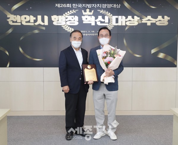 천안시가 한국공공자치연구원 주관 제26회 한국지방자치경영대상에서 ‘행정혁신대상’을 수상하는 쾌거를 거뒀다.
