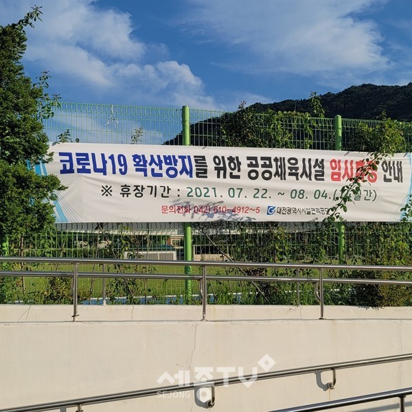 대전시는 22일부터 사회적 거리두기 단계가 3단계로 상향됨에 따라 코로나 19의 확산 방지와 시민들의 안전을 위해 8월 4일까지 대전시가 관할하는 공공체육 시설 37곳을 임시 휴장한다고 23일 밝혔다.