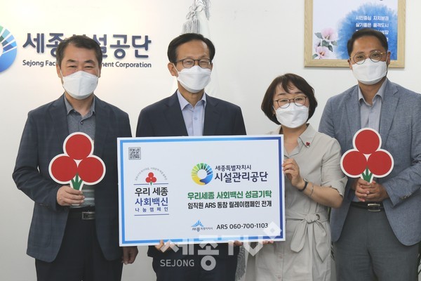 세종특별자치시시설관리공단(이사장 계용준, 이하 공단)은 코로나19 위기 대응 및 사회문제 해결을 위해 세종사회복지공동모금회가 전개하는 우리 세종 사회백신 나눔 캠페인에 동참해 성금을 전달했다고 22일 밝혔다.