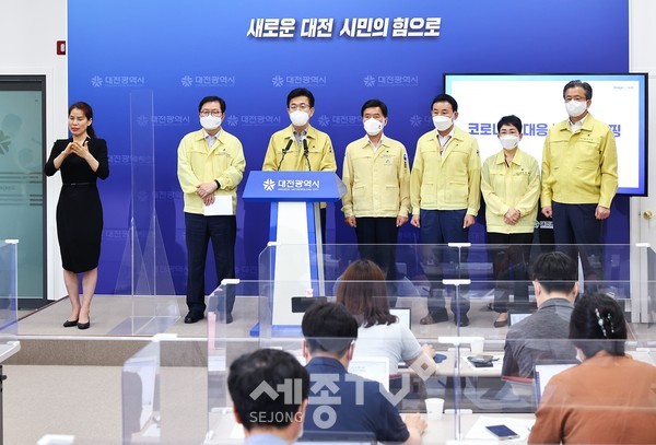 허태정 대전시장은“방역 조치를 지금 강화하지 않으면 현재 사태보다 고통스럽고 감당하기 어려운 상황이 올 수도 있다”며 “지금은 더 물러설 곳이 없다는 심정으로 방역 수칙 준수와 마스크 착용으로 코로나로부터 자신을 보호하는 성숙한 시민의식을 발휘해 주시기를 간곡히 부탁드린다”고 당부했다.