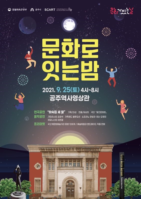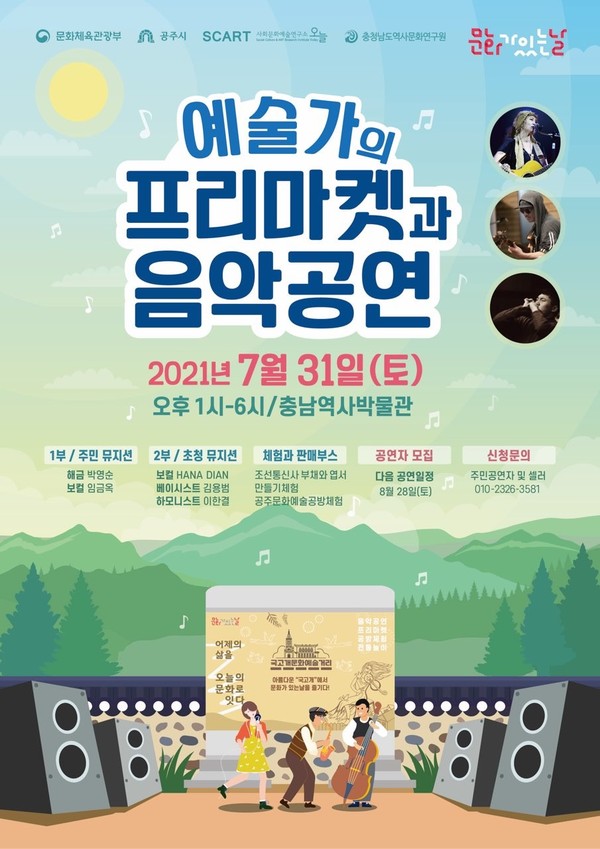 사회문화예술연구소 ‘오늘’(소장 임재일) 주관으로 열리는 이번 사업은 공주 시민들이 직접 참여해, 지역 예술가들과 함께 어울리는 관계를 통해 즐거움을 경험하고, 문화예술 활동의 가치를 공유하기 위해 기획된 프로젝트이다.