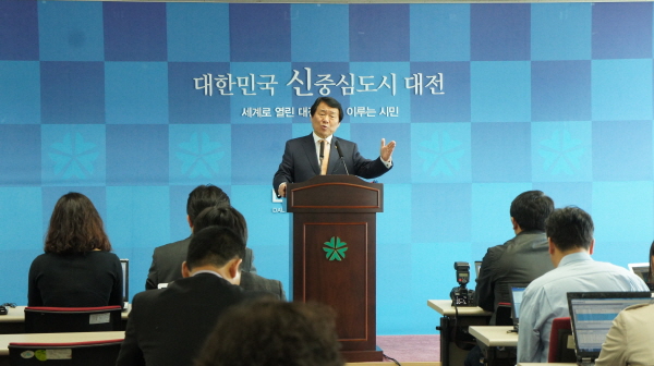 염 시장이 14일 오전 11시 시청 브리핑룸에서 기자회견을 열고 “프랑스·헝가리 출장 성과와 함께 ‘그르노블 구상’” 등에 대해 발표했다.