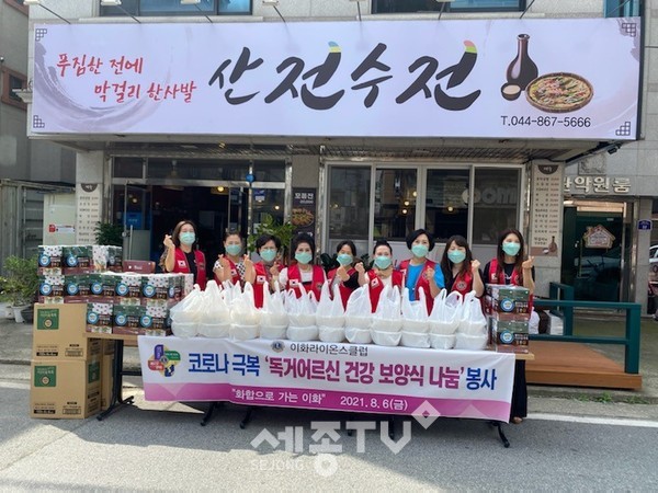 세종·충남 이화라이온스(회장 황채현)가 취약계층이 건강하게 여름을 보낼 수 있도록 6일 조치원읍 지역사회보장협의체(위원장 임재공·이재경)에 삼계탕을 후원했다.