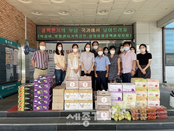 세종특별자치시 로컬푸드생산자연합회(회장 정용화)가 지난 6일 세종시보건소를 방문해 300만 원 상당 격려품을 전달했다.
