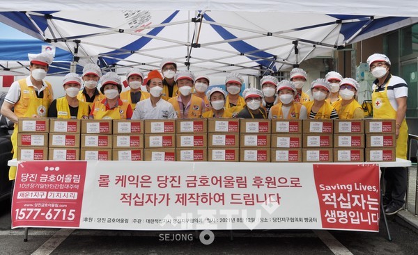 대한적십자사 당진지구협의회는 지난 12일 롤케익 600개를 만들어 독거노인 등에게 전달했다.