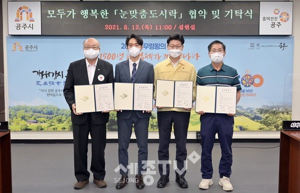 공주시(시장 김정섭)는 소외된 취약계층 및 코로나19 장기화로 어려움을 겪고 있는 소상공인들을 돕기 위한 ‘눈맞춤 도시락’ 사업을 추진키로 하고 지난 12일 협약식을 가졌다.
