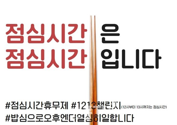 이에 천안시청공무원노조는 법률이 정한 공무원의 점심시간 완전한 보장을 위해 같은 날 전국 동시로 시작한 #1213챌린지에 동참했다.