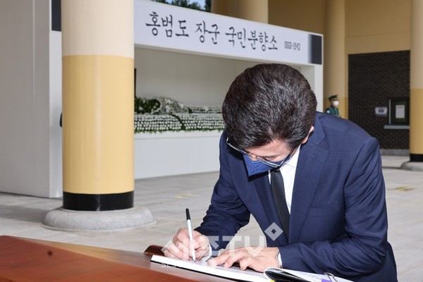 허태정 대전시장은 17일 오전 국립대전현충원을 찾아 서거 78년 만에 고국에 돌아온 홍범도 장군을 추모했다.