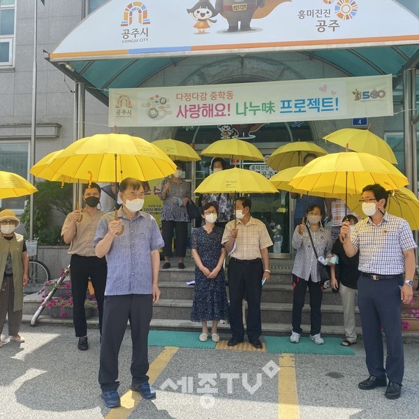한편, 중학동은 지난 6월부터 행정복지센터와 기독교종합사회복지관, 공주시 가족사랑 상담센터에 각각 20개씩 공유우산을 구비해 비 오는 날과 자외선이 강한 날에는 누구든지 자유롭게 사용하고 반납할 수 있도록 서비스를 제공하고 있다.