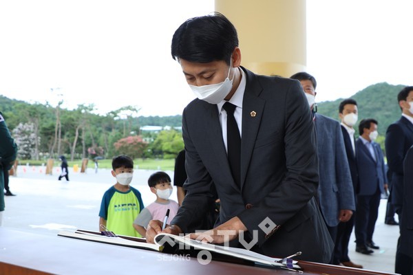 세종특별자치시의회(의장 이태환)는 17일 대전현충원에 마련된 국민분향소에서 ‘서거 78년, 봉오동전투 101년’ 만에 고국으로 돌아온 독립운동가 홍범도 장군을 추모했다.