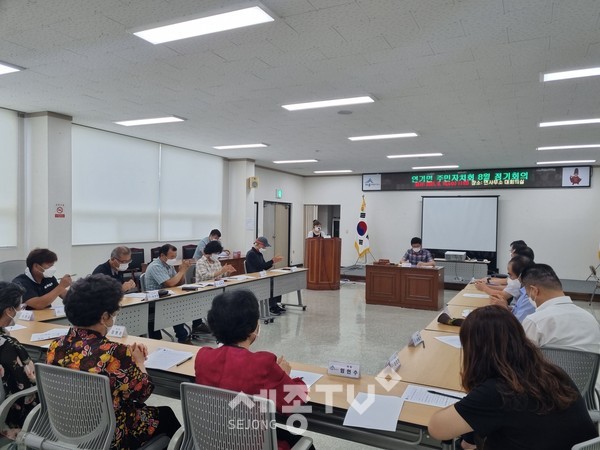 세종특별자치시시 연기면 주민자치회(회장 신동익)가 18일 면사무소 대회의실에서 ‘연기면 주민자치회 8월 정기회의’를 개최했다.