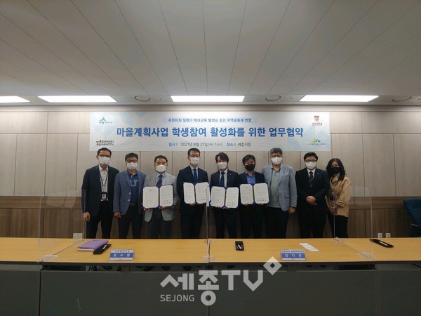 시는 25일 고려대학교 세종교육혁신원(원장 양지운), 세종시 주민자치연합회(회장 안주성), 세종사회적경제공동체센터(센터장 주일식)와 마을계획사업 학생참여 활성화를 위한 업무협약을 체결했다.