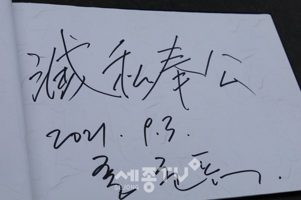이번 선거에서 “좌우 갈등을 넘어 국익우선주의로”를 기치로 내걸고 있는 홍 예비후보는 마산 민주묘지 방명록에 滅私奉公(멸사봉공) 네 글자를 남겼다. 멸사봉공은 ‘私(사)를 버리고 公(공)을 위해 힘써 일함’의 뜻을 담고 있다.
